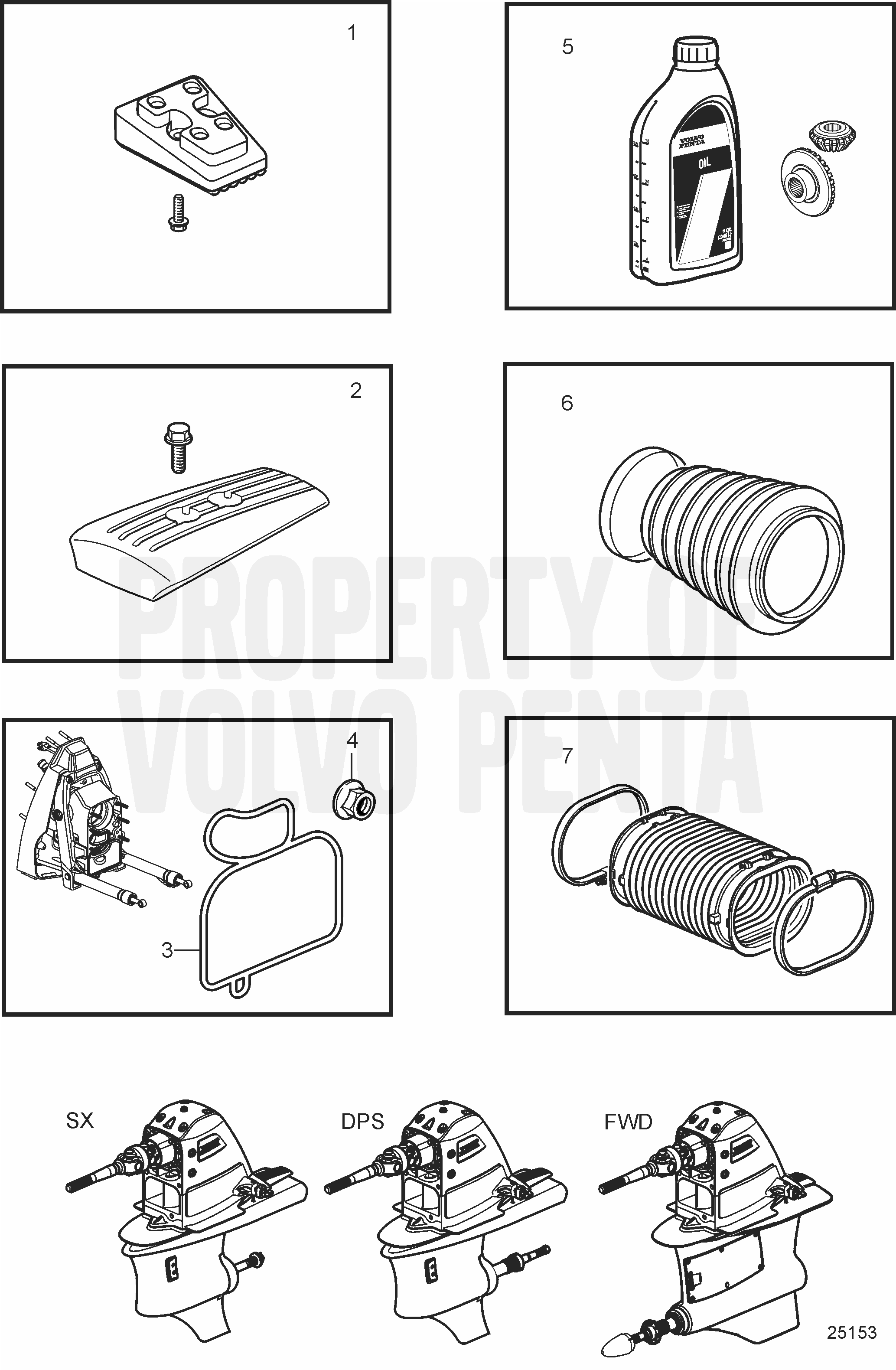 Anslutningskomponenter AQ Drev 280 med Power Trim |
